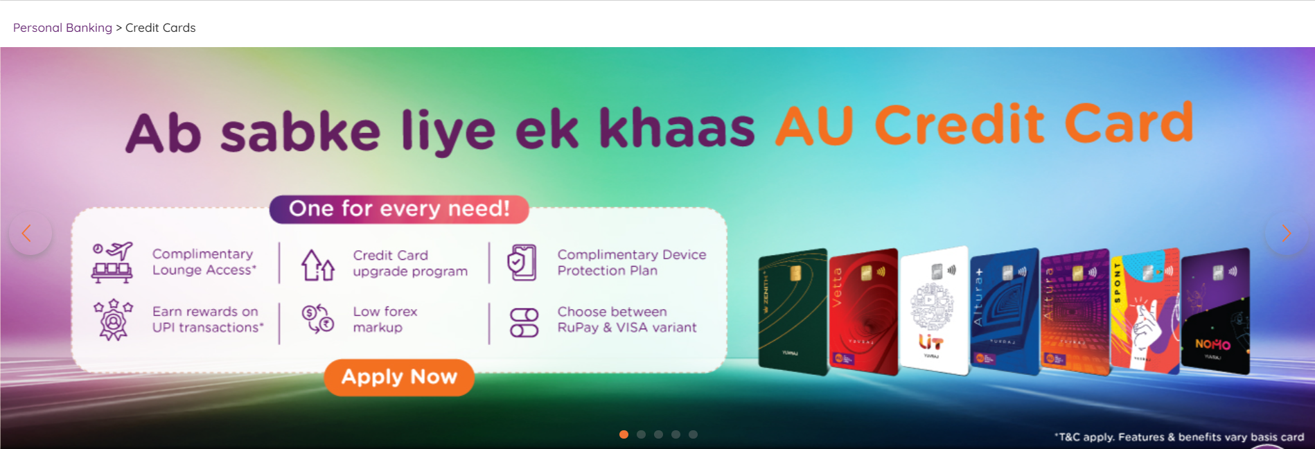 Presenting AU Credit Cards, a world of Limitless possibilities.