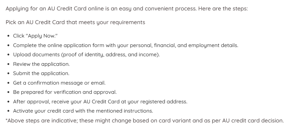 Reward Redemption – Credit Card – AU SMALL FINANCE